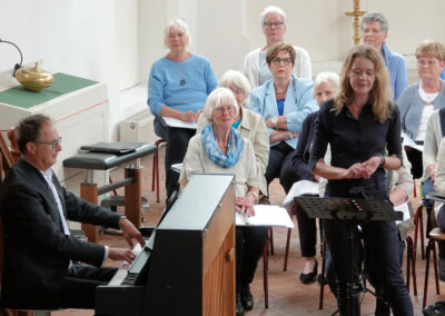 We houden regelmatig een workshop om het peil van het koor te verhogen en ook om de onderlinge band te bevorderen. Naast het serieus instuderen van de liederen is er ook tijd voor een grap en een lach, want gezelligheid is voor ons ook een belangrijke factor.